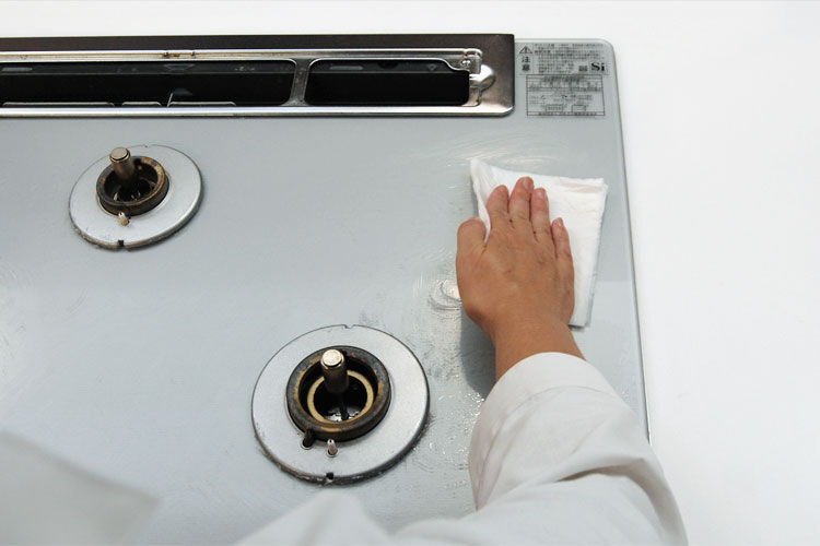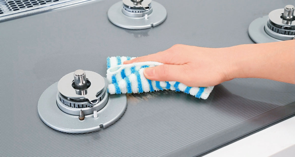 コンロ上部、ガラストップ等の天板のお手入れ。