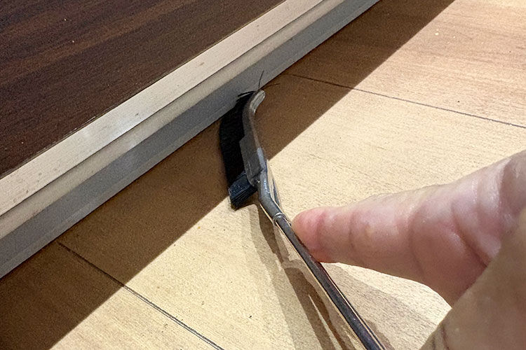 - 掃除用のブラシ(細身の「大津式お掃除ブラシJ」が特におすすめです)を使い、境目や隙間部分の汚れをかき出します。