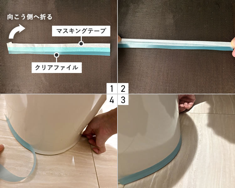 - ファイルを曲線に沿わせながら、テープを貼ります。