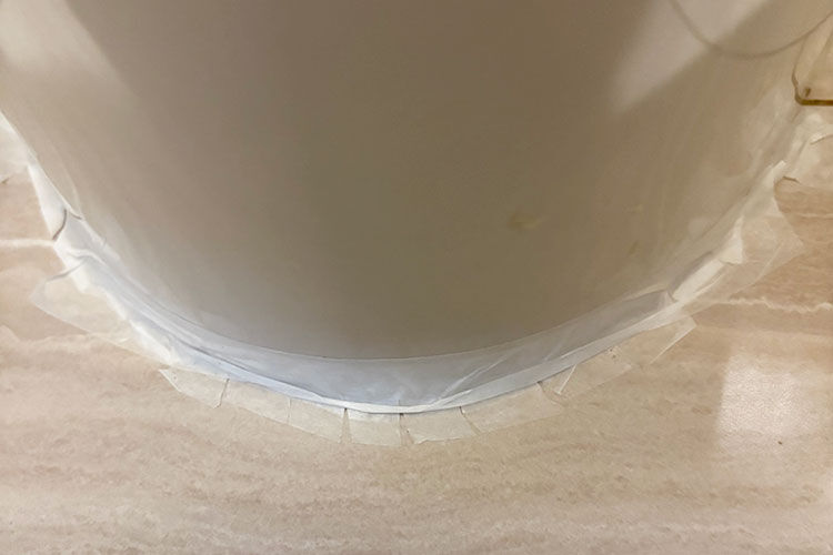 パッキンに入り込んだカビは除去が大変なので、そうなる前にマスキングテープでカバーし、汚れが付着するのを防ぎます。