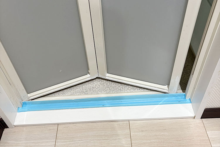特に中川先生はレールの脱衣所側に汚れがたまるのが気になるとのことで、扉のすぐ外側、レールに触れない場所にマスキングテープを貼って、汚れを予防しています。