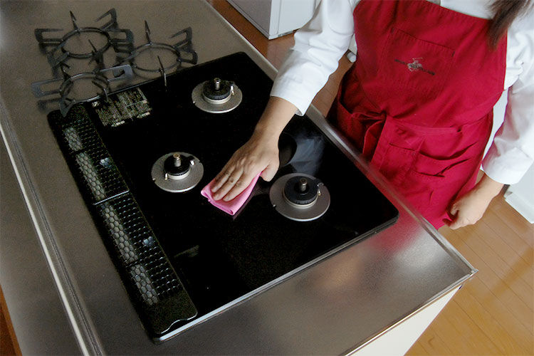 掃除のプロが実践中のガスコンロ掃除のコツ。