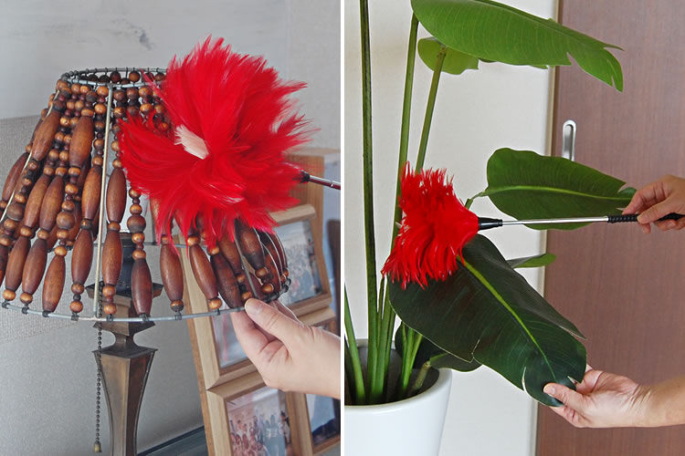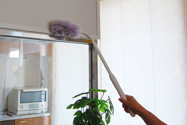 ピアノや観葉植物、照明器具の上等も傷つけたくないので毛はたきを使いますし、柄を伸ばして隙間や高所等、他の道具では届きにくい場所の掃除も可能です。