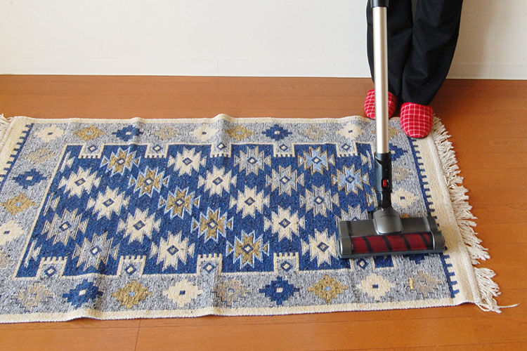 ラグ等には床を保護するだけでなく、空気中のホコリや砂等を受け止めてその中に留めておく役割もあります。