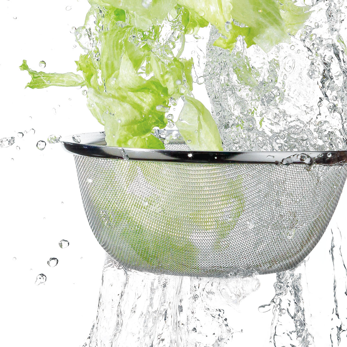パンチング(穴あき)ではなく水切れがしやすいメッシュ(網)を採用。網の大きさはさまざまな食材を逃さず、目詰まりもしにくい16メッシュ。網自体が丈夫で型崩れしにくいです。