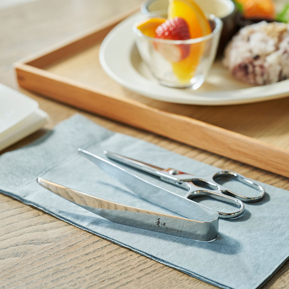 外食時の頼もしい”OTOMO”、ハサミとトングのセットです。