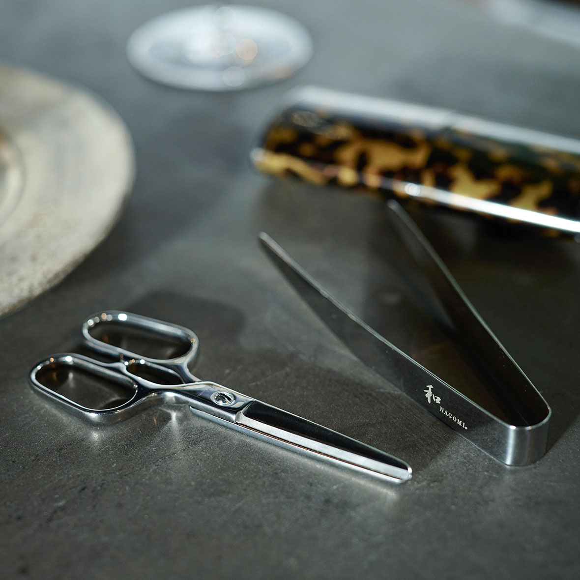 【素材】ハサミ:ステンレススチール冷間鍛造造り、トング:ステンレススチール、ケース:アセチロイド(天然由来のセルロース素材)