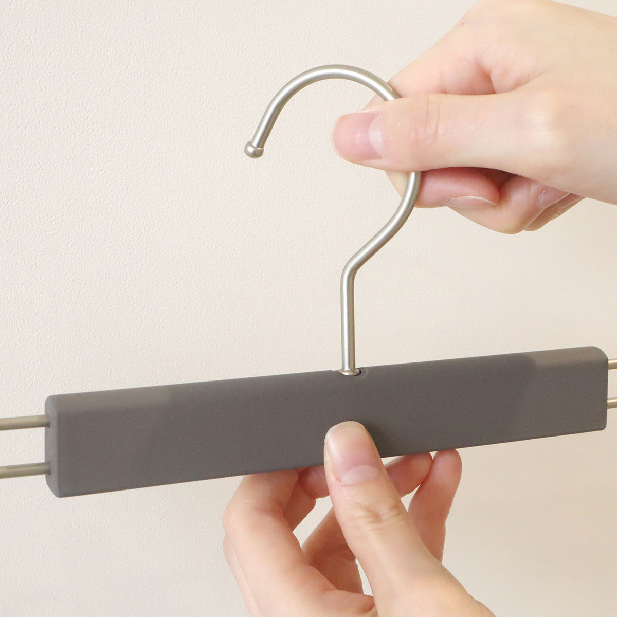 お気に入りのパンツが落ちたりクリップの跡がついたりしない、ボトムス用ハンガーです。