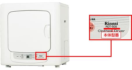 製品の型番は、本体正面のリンナイロゴ(Rinnai)の横に記載があります。