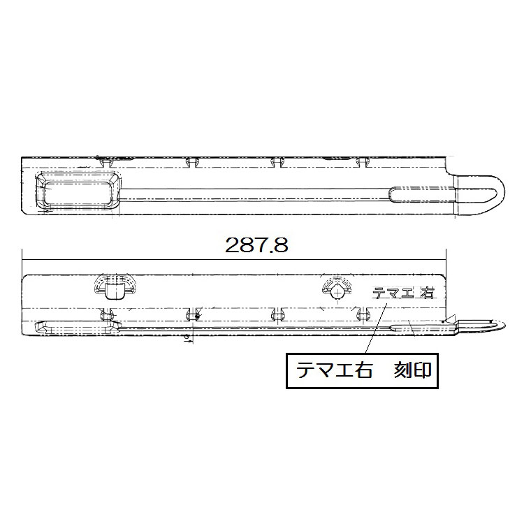 下火カバーの「テマエ」刻印を手前にして、穴(2個所)をグリルの側面にあるピンにかけるように取り付けてください。