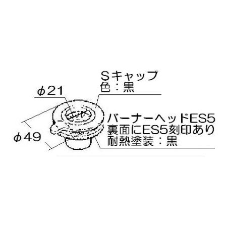 バーナーキャップ【小バーナー用】(黒)※裏面「ES5」刻印あり