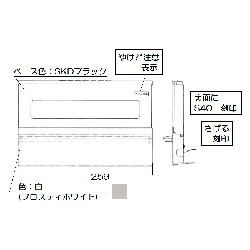 - グリル扉を矢印の方向に押してください。カチッと音がするまで押してください。