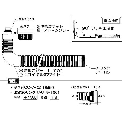※出湯管リング(Oリング小)、Oリング(Oリング大)、出湯管袋ナットは付属されています。
