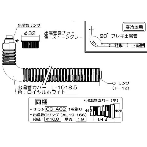 ※出湯管リング(Oリング小)、Oリング(Oリング大)、出湯管袋ナットは付属されています。