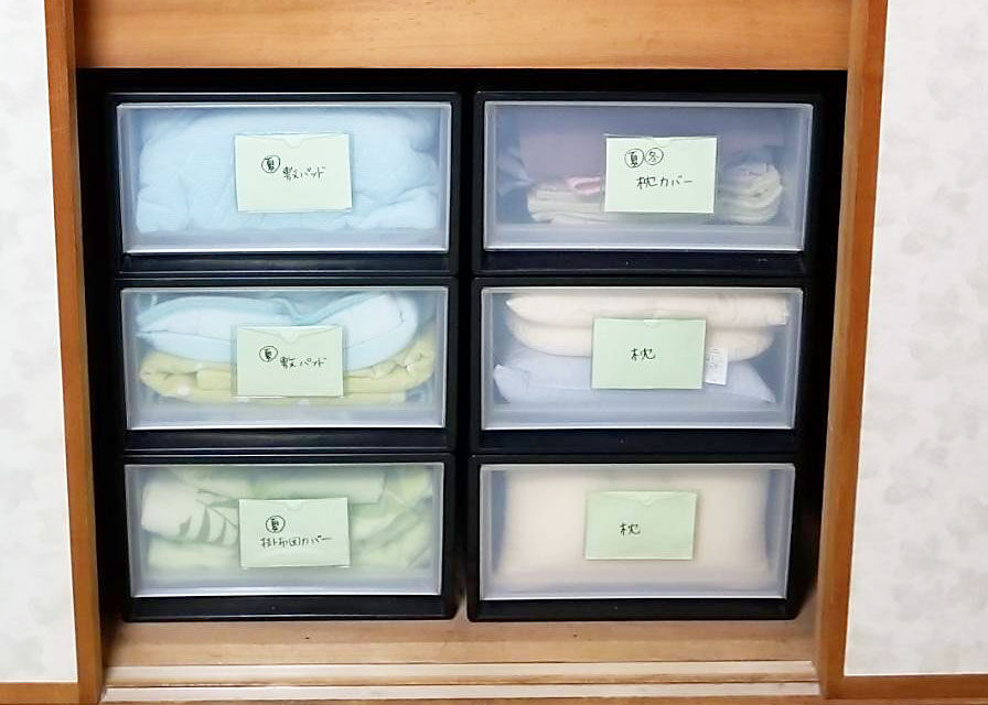 押し入れに衣類整理用の透明ケースを入れ、そこで整理するのが便利です。