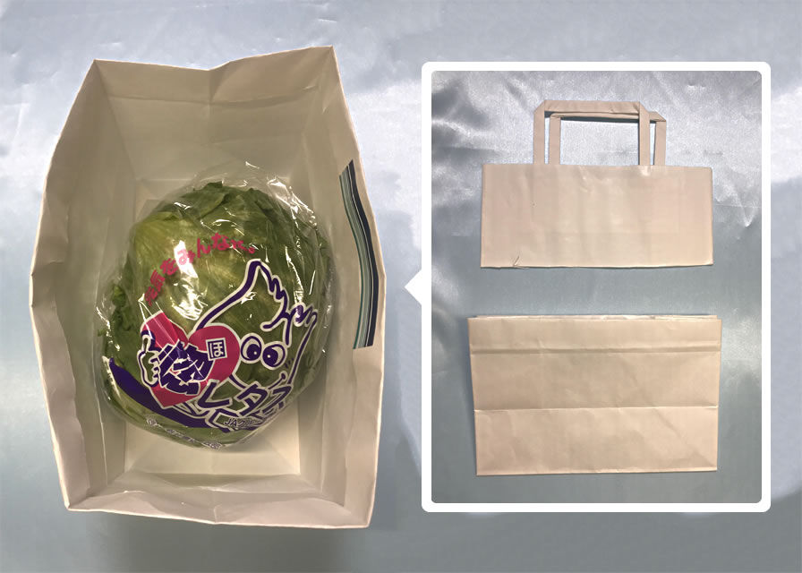 紙袋は野菜に合わせて形を変えられ、汚れたらそのまま処分できるのが利点です。