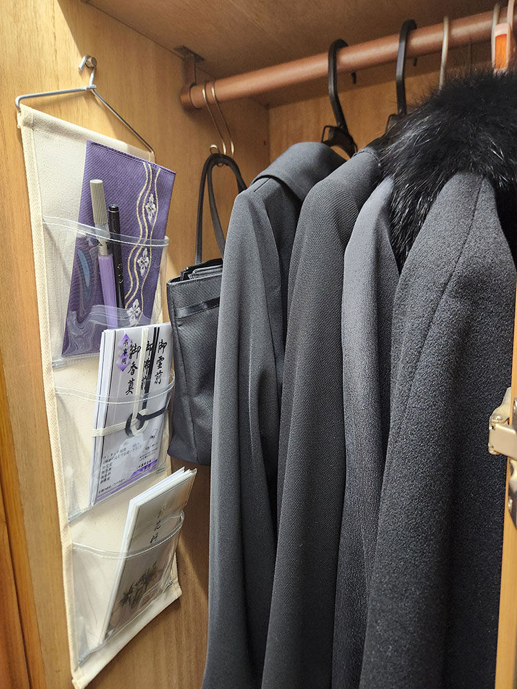 宝生先生は普段あまり使わない和室に置いてあるクローゼットを丸ごと喪服コーナーにしています。
