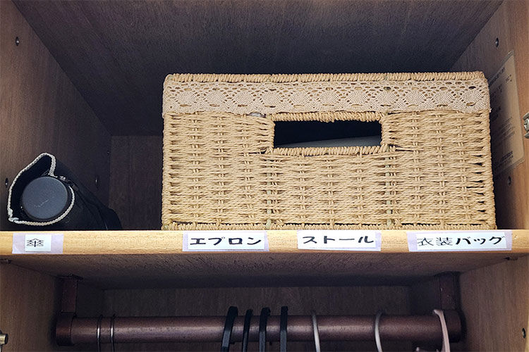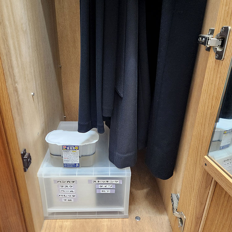 現在は1人分を管理していますが、大人数だった頃はタンスをもう1台使って喪服コーナーにし、ラベリングをして管理していました。