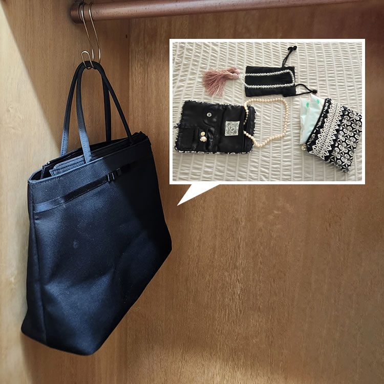 そのほか、数珠やポケットティッシュ等もバッグに入れて保管しています。